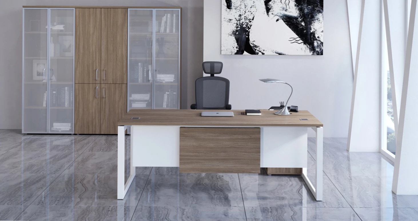 Стол рабочий руководителя на О-образном м/к O.MO-SRR-3.8 Тиквуд светлый/Антрацит металл 1380*800*750