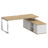 Стол руководителя с опорной греденцией, правый SK.SRG-200 (R) Тиквуд светлый/Белый бриллиант 2000*1800*753 купить по лучшей цене
